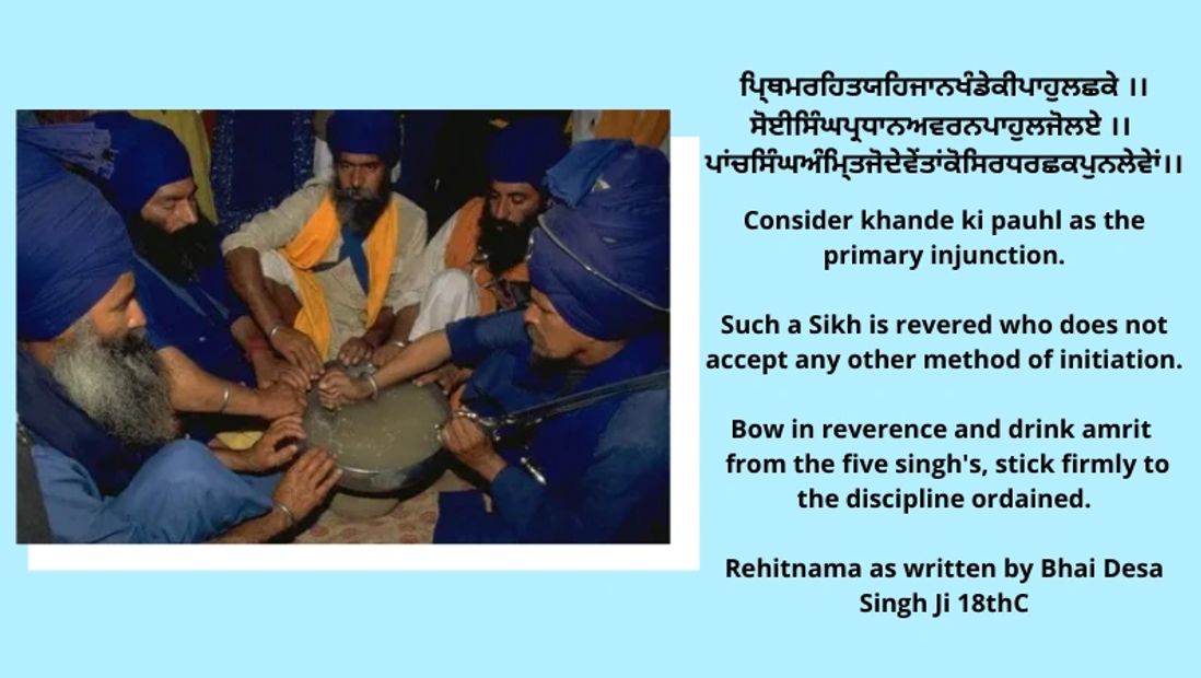 The Punjabi definition of 'Sikh-na' means to learn. Thus, the term 'Sikh' came to be. The succession of the 10th Guru saw a change in the practice of Charan-Pauhl initiation, and In 1699 Guru Gobind Singh created the Khalsa Panth. All Khalsa must adhere to the Rehit Maryada (Code of conduct) which stipulates how one should speak, eat, sleep, dress, live etc..