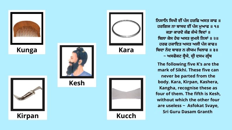 To join the Khalsa one must always keep Punj Kakkar (five articles) on their person at all times. Each Kakkar maintains spiritual and practical benefits, they are;